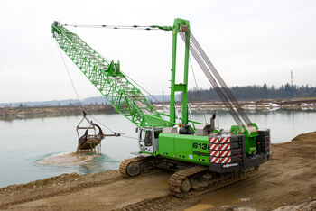 SENNEBOGEN offers in its assortment duty cycle cranes, also called dragline excavators or hydraulic rope excavators for quarrying work and for the extraction of raw materials - in particular for the extraction of gravel, sand, coal, clay and other building materials. The machines are robust and particularly suitable for use with draglines or dragline buckets: