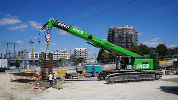 At the site in the Part-Dieu district, the restrictions are many: the machine has to work round the underground infrastructure of the already constructed plant, with the city of Lyon's public transport system with its tram tracks and catenaries only a few meters from the drilling position. Thanks to the hydraulically telescopable crawler undercarriage, the SENNEBOGEN 630 R-HD not only stands reliably and safely, but can also be moved quickly and flexibly on the job site.