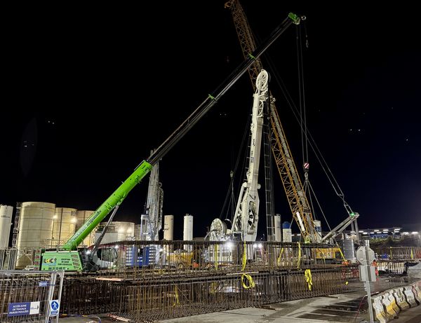 In preparation for the upcoming tunnel boring, NGE FONDATIONS is constructing the 1200 mm thick diaphragm walls. This is being carried out using a SENNEBOGEN 6130HD duty cycle crane with a STEIN diaphragm wall grab and a hydro cutter. The diaphragm wall elements are 50 m deep, with the outer walls measuring 1,000 mm and the central partition wall measuring 1,200 mm in thickness. Two closure plates – one at each end – complete the structure and act as shielding in both directions, preventing any major water leakage that may be generated by the tunnel boring machine.