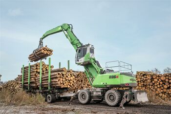 In general, the company focuses on sustainable production and fuel-saving, low-emission handling solutions that pave the way to a "green future". The 835 E has been designed in cooperation with the sales partner SENNEBOGEN Vertriebs GmbH & Co. KG. A mobile undercarriage in a special version for trailers, large single tyres and a protective shield that is indispensable for timber applications proved to be the ideal solution.