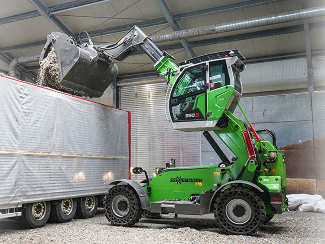 Why SENNEBOGEN telehandlers? They are ideal for companies looking for versatile machines for demanding applications. Thanks to the best overview, maximum performance and robust design, they combine the advantages of telehandlers and wheel loaders.
