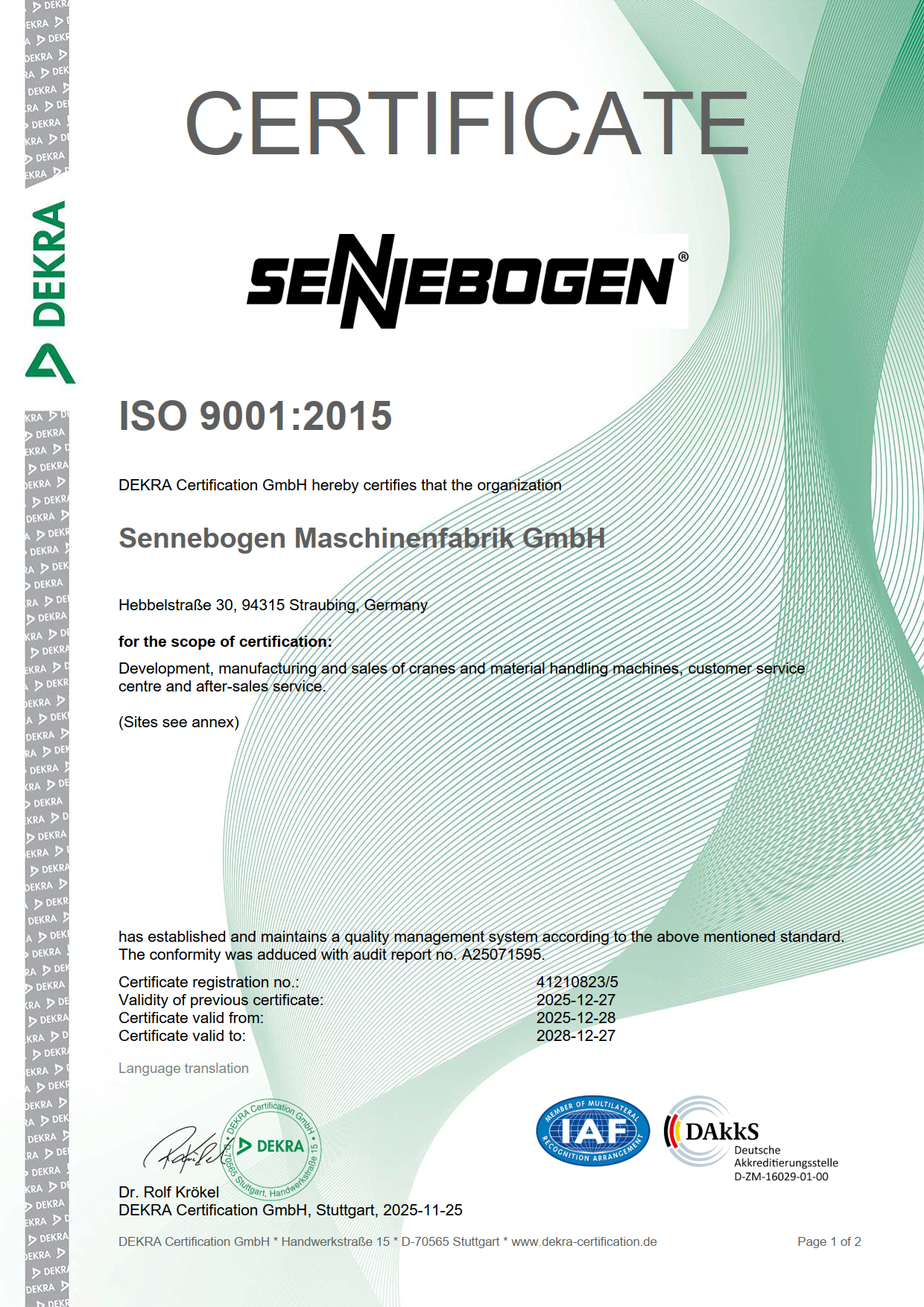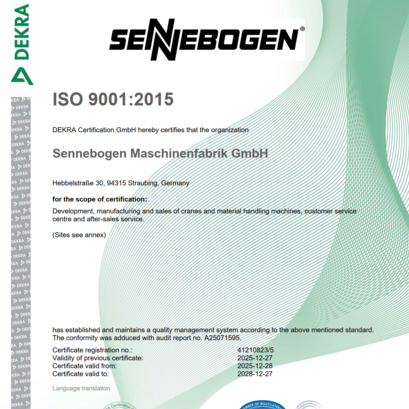 ISO certification SENNEBOGEN Multi Line Wackersdorf