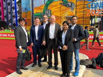 Zum ersten Mal besuchte in diesem Jahr auch Erich Sennebogen die Messe. Gemeinsam mit Jürgen Scheske aus dem Strategischen Einkauf, dem Area Sales Manager Florian Feldbauer sowie Ruchi Doshi und Ratnesh K. Singh vom ansässigen Händler Forsenia haben sie sich mit bestehenden und potentiellen Kunden und Lieferanten getroffen, um Marktmöglichkeiten zu besprechen.