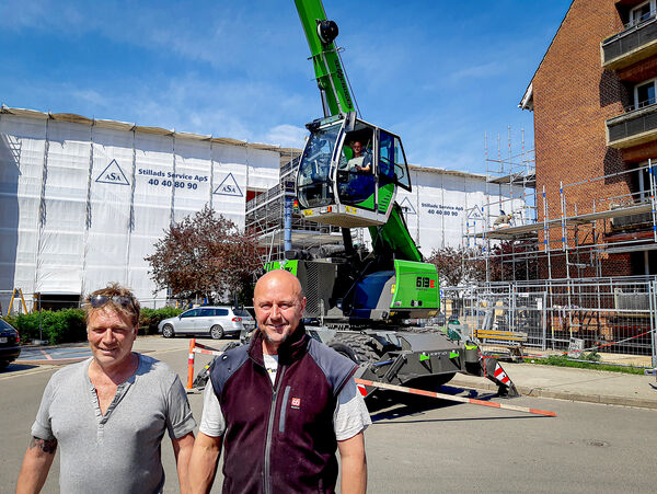 Der Kran wurde im Zusammenhang mit einem großen Renovierungsprojekt in Roskilde gekauft. In den nächsten 3,5 Jahren wird er dort für den Austausch von Dächern, Balkonen, Fenstern und Fassadenteilen eingesetzt. Das Projekt startete im April und der neue SENNEBOGEN hat sich bereits bewährt. „Wenn sich der 613 M im abgestützten Zustand befindet, bewegen wir die Gerüstteile mit Mini-Ladern. Dann kann sich der Kran auf das Heben konzentrieren, was der schnellste Prozess ist. Allen voran brauchen wir Zuverlässigkeit, und genau dafür steht SENNEBOGEN. Der Kran hat außerdem den Vorteil, dass er 360° schwenken kann. Für die Bedienung braucht man in Dänemark allerdings einen Kranschein, aber den hatten zwei meiner Mitarbeiter schon", so Henrik Jessen abschließend. Alles in allem ist durch die Kranlösung das Heben schwerer Lasten für die Mitarbeiter deutlich weniger geworden, was die Arbeitsumgebung spürbar verbessert hat.