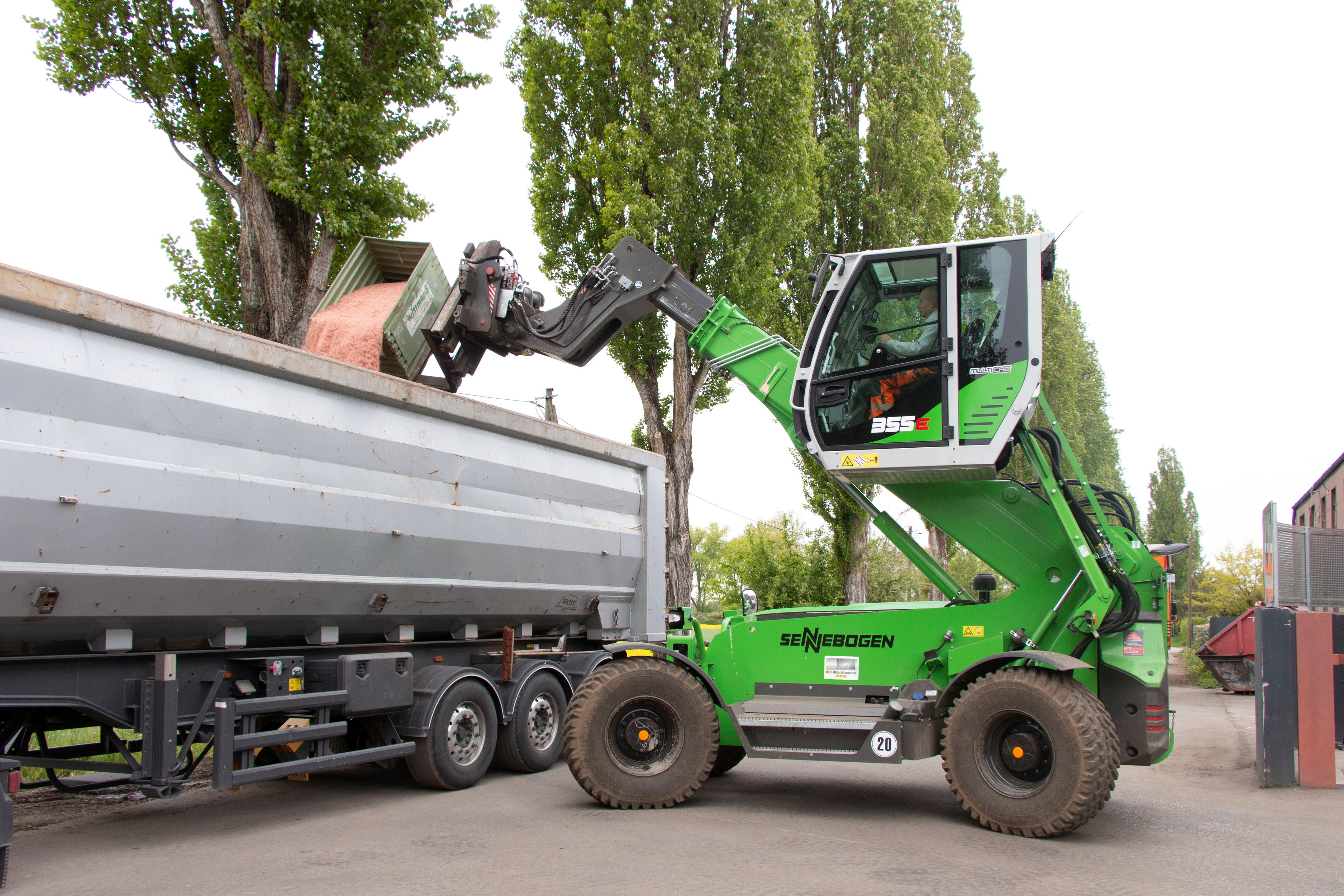 Durch die einzigartige hochfahrbare Kabine hat der Fahrer zusätzlich seinen Arbeitsbereich, z.B. bei der Schüttgutbeladung mit der Schaufel in den LKW, im wahrsten Sinne des Wortes im Blick. Auf 4,25 m Augenhöhe sieht der Fahrer bestens wie sich das Schüttgut verteilt und kann somit effizienter arbeiten. Herr Kloo ergänzt: „Die Sicht aus dem SENNEBOGEN 355 E ist einmalig. Die hochfahrbare Multicab sorgt für einen echten Rundumblick und bietet dem Fahrer viel mehr Arbeitssicherheit als andere Wettbewerber. Für mich ist es die weltbeste Maschine - stark, wendig, flexibel und zuverlässig.“