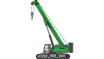 Der 120 t Raupentelekran 6113 E von SENNEBOGEN ermöglicht, bestens unter diesen Sicherheitsbedingungen zu arbeiten und gleichzeitig die Anforderungen beim Heben schwerer Lasten zu erfüllen. Tatsächlich war das Verhältnis von Arbeitshöhe zu Traglast sowie die Aspekte Kompaktheit und Reichweite ausschlaggebend für die Wahl der Maschine. Mit einer maximalen Traglast von bis zu 120 t und einer maximalen Reichweite von bis zu 40,2 m spielt hier besonders der Full-Power Boom des SENNEBOGEN 6113 seine Stärken aus. Gerade bei engen Platzverhältnissen lassen sich die Raupenlaufwerke in ihrer Breite variieren und zwischen 6,30 m Abstützbreite und 3,9 m einstellen.