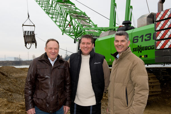 In der Kiesgrube Wundschuh nahe Graz arbeitet ein SENNEBOGEN 6130 HD im Schleppschaufeleinsatz. In einer Abbautiefe von bis 13 m gilt es dort extrem harte Schichten zu durchdringen, was bei Gral Schotter der Ausschlag für einen Seilbagger dieser Größe gab. Beeindruckende 354 kW leistet der Dieselmotor im SENNEBOGEN 6130 HD. Zwei kraftvolle Winden bieten jeweils bis zu 30 t Zugkraft und zusammen mit dem starken Raupenfahrwerk und einer servicefreundlichen Konzeption entspricht die Maschine voll den Anforderungen.