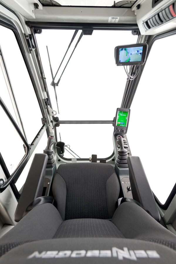 Die SENNEBOGEN Maxcab setzte seit 2007 den Maßstab in der Welt des Materialumschlags mit Schiebetür und luftgefedertem Komfortsitz. Als meist-verbaute Kabine aller SENNEBOGEN Kabinenvarianten, hat die Maxcab nun ein neues Innenleben bekommen. Neben dem Fahrersitz wurden auch die Bedienelemente und Joysticks in ihrer Anordnung und Formgebung überarbeitet. Durch die Positionierung der Konsolen direkt am Sitz sind diese mitschwingend gelagert und für die Hände stets optimal zu erreichen. Die ergonomische Formgebung der SENNEBOGEN Joysticks erlaubt eine feinfühlige Ansteuerung aller Funktionen und schont die Handgelenke. Die bewährte Schiebetür und stabile Trittroste mit Geländer bieten ein Höchstmaß an Sicherheit und Arbeitskomfort schon beim Einstieg. Eine besonders große Türöffnung erleichtert dabei den Ein- und Ausstieg aus der Maxcab. Insgesamt lässt sich der neue Fahrerplatz der Maxcab Kabine nun noch individueller und ergonomischer auf den jeweiligen Nutzer einstellen.