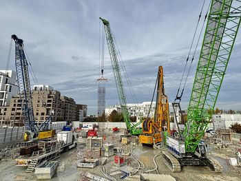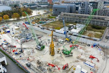 Die Spezialtiefbauarbeiten für das künftige U-Bahn-Netz des Grand Paris Express laufen auf Hochtouren. Auf der Linie 15 West sind die Teams von NGE FONDATIONS an mehreren Baustellen gleichzeitig im Einsatz und nutzen gleich mehrere SENNEBOGEN-Krane und Seilbagger sowohl für die anfallenden Fundament- als auch für die Hebearbeiten.