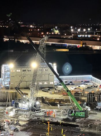 Die anfallenden Hebearbeiten, insbesondere die der Bewehrungskörbe, werden mit dem Raupenkran SENNEBOGEN 3300 mit einer Tragkraft von 125 t durchgeführt, der von der Firma FORCE-LOC zur Verfügung gestellt wurde. Ausgestattet mit einer Hauptwinde und einer Hilfswinde gewährleistet der Kran das sichere Anheben der Baustahlmatten, sodass die geschweißten Metallkonstruktionen unversehrt bleiben. Die Schwerlasthebearbeiten übernimmt der ebenfalls auf der Baustelle eingesetzte 140 t Seilbagger SENNEBOGEN 6140 HD. Ausgestattet mit zwei 350-kN-Freifallwinden wird dieser ab Anfang 2026 mit einem 1500 mm-Schlitzwandgreifer ebenfalls bei den Tiefbauarbeiten auf der nächsten Baustelle des Bahnhofs Gare des Agnettes zum Einsatz kommen.