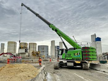 Auf dieser Baustelle werden die Tiefbauarbeiten von zwei Trägergeräten mit Schlitzwandgreifer und Hydrofräse durchgeführt, die anfallenden Schwerlasthübe von einem Raupenkran. Alle weiteren Hebe- und Verladearbeiten übernimmt der Raupen-Teleskopkran SENNEBOGEN 673E mit einer Tragkraft von 70 t. Der geländegängige Teleskopkran wurde aufgrund seiner Kompaktheit und Vielseitigkeit ausgewählt. „Mit ihm können wir in allen Bauphasen vielfältige Anforderungen auf der Baustelle erfüllen: Vorbereitung der Bewehrungskörbe, Betonierarbeiten und alle schnellen Verladearbeiten auf der gesamten Baustelle. Seine Fähigkeit, sich unter Last zu bewegen und seine Auslegerlänge auch unter Last frei einzustellen, sind echte Vorteile für unsere Teams“, erklärt Bauingenieur Loris Berniot.