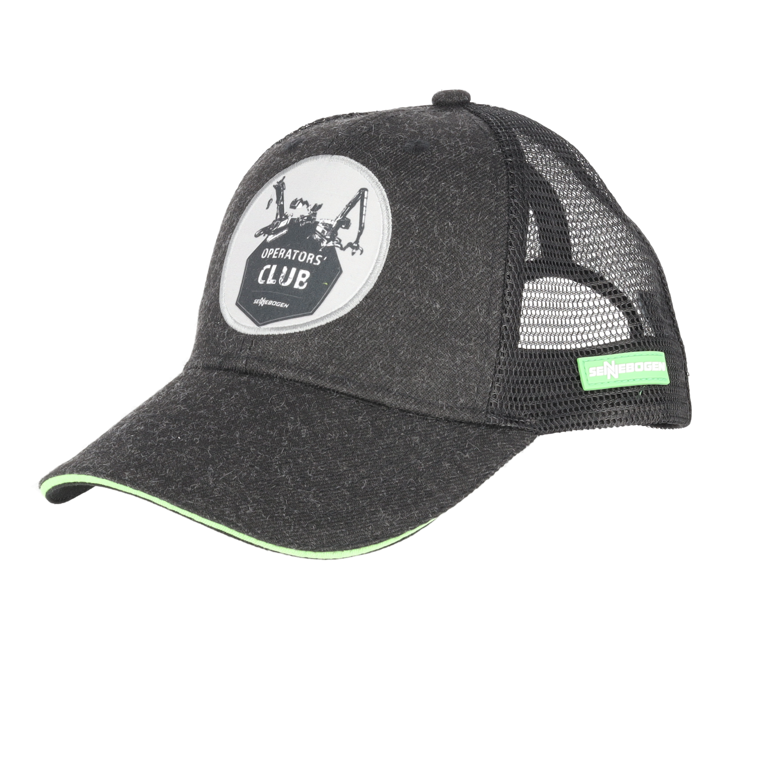Rückseite mit luftdurchlässigen Netzstoff „Operators‘ Club“ Badge auf der Vorderseite, 2D Rubber SENNEBOGEN Logo auf der Seite